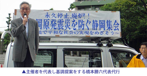 主催者を代表し、橋本勝六社民党県連合代表代行が原水禁静岡県民会議の立場から基調提案を行いました。