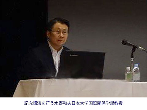 その後、水野和夫日本大学国際関係学部教授から「資本主義の終焉と歴史の危機」をテーマに90分間講演を聞きました。水野教授は「資本主義は今その役割を終えつつあり、終わらせなければ弊害がさらにひどくなる。現代は既存のシステムが機能不全に陥る一方、新しいシステムが見えてこない歴史の危機の時代で、ローマ帝国の崩壊に匹敵する」と大胆に問題提起しました。その根拠として「日本国債の利回りをはじめ利子率が事実上ゼロに近く、資本の利益率がゼロに近づいたことで、資本の本質である自己増殖が不可能になっている。景気の上下と関係なく労働者への分配が下がり、資本主義は全員で支えるシステムでない」と断言しました。その上で「より遠く、より速く、より合理的にという資本主義の価値観は終焉し、より近く、よりゆっくり、より寛容にという方向に進むべきだ」と指摘しました。