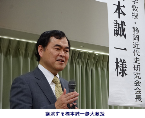 講演は、「アベ的政治を考える」~いま私たちが対峙しているものの正体は?~と題し、橋本誠一静岡大学教授が90分間熱く語りました。 橋本教授は「日本の政治構造は、外交・軍事面では対米従属、経済的には新自由主義路線で格差を拡大、国内政治では極右思想の少数者が国家権力を握る寡頭制支配で、国民主権や基本的人権を公然と否定している。この三層構造が『アベ的政治』の実態である」と指摘し具体的に解説しました。さらに、極右の憲法思考について「自民党改憲草案を手掛かりに考えてみると、天皇を元首に位置付けているがお飾りに過ぎず、実権は彼らが握るということ。基本的人権は、国民の『自由及び権利』が『公益及び公の秩序』(政府・与党の政策など)と対立する時は、『国民は常に責任と義務を自覚しそれを濫用してはならない』と、個人の自由と権利を大幅に制限している。表現に自由については『公益及び公の秩序を害することを目的とした活動・結社を禁止する』と、外的表現行為を国家が制限し、内心の自由の制限は、新憲法制定を待たずに『共謀罪』(テロ等準備罪)で行おうとしている。共謀罪では証言しないことも罪となり、適用範囲は際限なく拡がる。非常事態条項も立法権と行政権を独裁的に行使する寡頭制国家にほかならない。極右が目指しているのは『保守革命』だ」と指摘した。その上で、『アベ的』政治に立ち向かうには「自由・公正・平等をキーワードに、多様化している国民が納得できるよう、柔軟かつ理性的な政策を提示していくことが課題だ」と講演を締めくくりました。 集会では、憲法改悪に反対し、憲法理念と憲法が保障する人権を、現実の政治と暮らしに生かす運動を強めるアピールを採択しました。 |